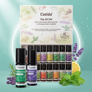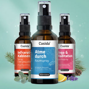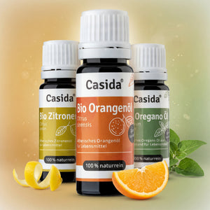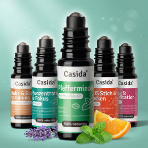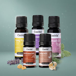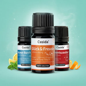 Die hochwertigen Duftmischungen von Casida® enthalten pure ätherische Öle - ohne Alkohol, Parfum oder synthetische Bestandteile. Jede Duftmischung ist eine Komposition aus mehreren naturreinen ätherischen Ölen, die für die gewünschte Wirkung harmonisch aufeinander abgestimmt sind. Ob zum Entspannen, Durchatmen oder Kraft tanken – Casida® bietet die passende Duftmischung für eine Vielzahl von Anwendungsgebieten.Die fertigen Duftmischungen eignen sich ideal zum Vernebeln mittels Aroma-Diffuser und versprühen so ihren individuellen Duft für die gewünschte Wirkung. Die Mischungen eignen sich auch hervorragend als Zutat im Raumspray, zum Aufbringen auf Aromaschmuck, auf einen Trägerstoff oder in der klassischen Duftlampe. Denn die hochwertigen ätherischen Öle entfalten ihre Wirkung bereits beim Riechen.Um Duftmischungen selbst herzustellen, bietet Casida® eine große Auswahl der beliebtesten ätherischen Öle in 100% naturreiner, therapeutischer Qualität. Im Casida® Ratgeber finden sich immer neue Tipps und Do It Yourself-Rezepte zum selber Mischen verschiedener Hausmittel und Duftkompositionen aus ätherischen Ölen.