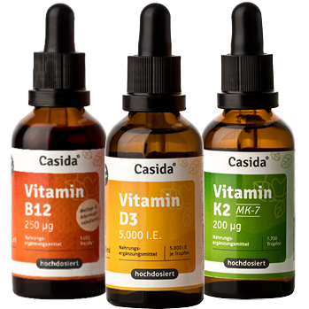 Casida offers high-quality vitamin supplements that are specifically tailored to the body's needs. The combination of vitamin D3, K2, and B12 strengthens the immune system and provides comprehensive support for the body – for greater well-being and vitality in everyday life.