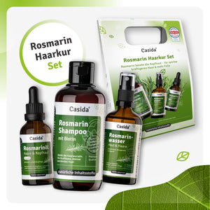 The Casida Hair Treatment contains three rosemary products for natural nutrient supply and rich hair care. Beautiful, healthy hair – with natural ingredients without unwanted additives. Give your hair optimal support with this set and save 15% compared to individual purchases!