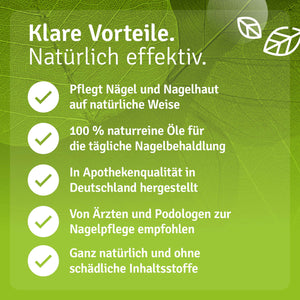 The Nail Oil Repair & Protect - a blend of pure natural oils with tea tree oil, oregano oil, lavender oil, thyme oil, peppermint oil, eucalyptus oil, fennel oil, and camphor in sunflower oil promotes healthy nail growth - visible results for permanently beautiful nails.
