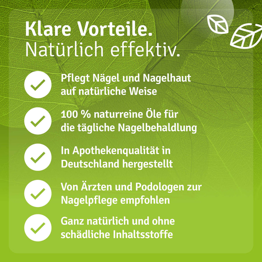 Resistance to chemical preparations can develop, which often impairs their lasting effect. However, a select combination of plant extract oils enables a positive cosmetic treatment of nails.