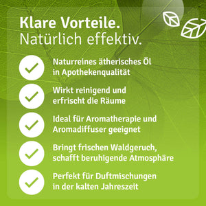 Thanks to the strictly controlled ingredients, our pine needle oil is absolutely pure and natural. The patented violet glass bottle protects the valuable essential oil from UV exposure. Ideal for use in aroma diffusers, fragrance lamps, or for individual room fragrance – for an invigorating, natural room ambience. Due to its fresh forest scent, pine needle oil is often used in moments of relaxation after physical activity. Of course, we consistently refrain from animal testing.