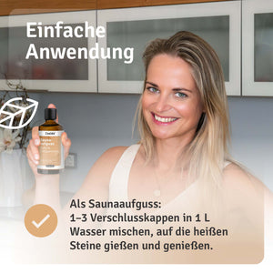 Die Anforderungen des Alltags sind vielfältig. Kleine Auszeiten geben Kraft und innere Balance. Mit dem Saunaduft „Ruhe & Entspannung“ entsteht in deiner Sauna ein wohltuendes Duftambiente, das Geborgenheit schenkt und innere Ruhe fördert.