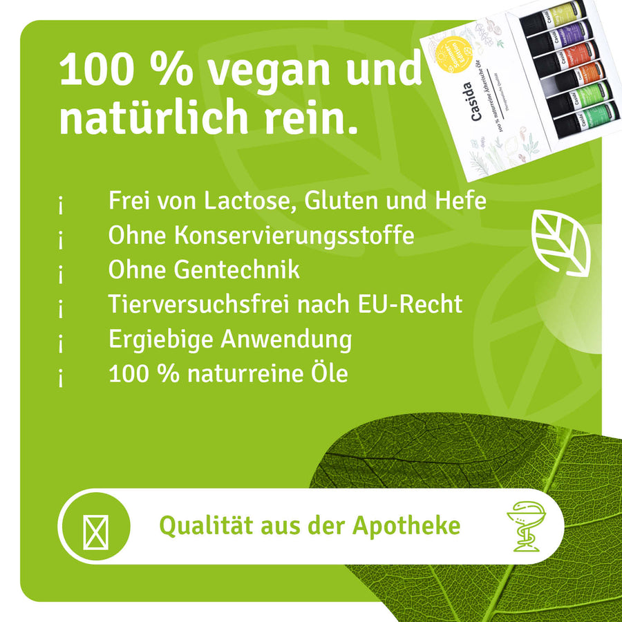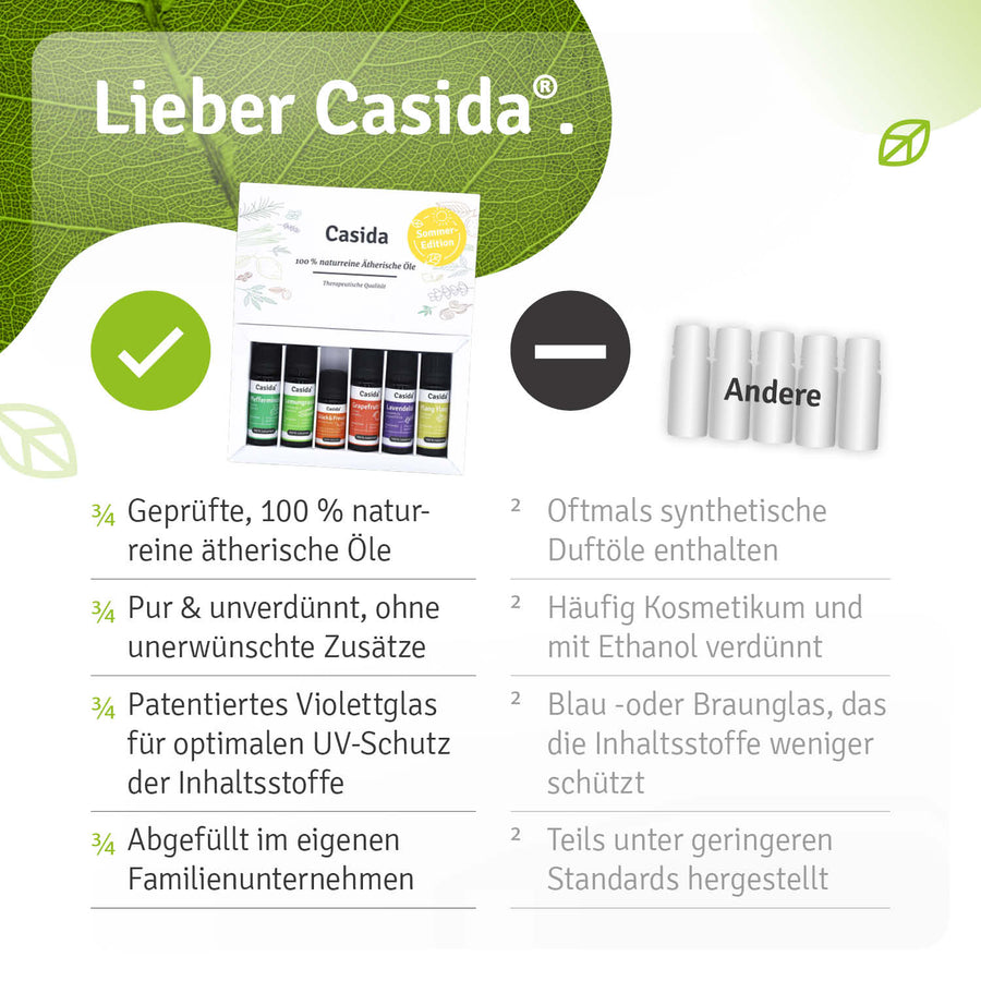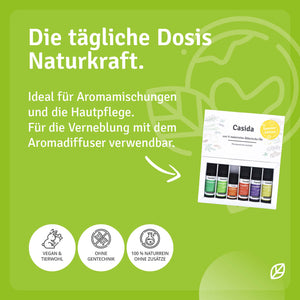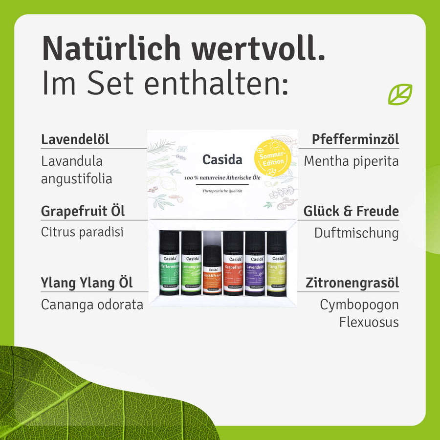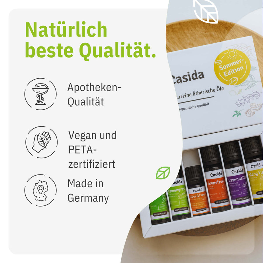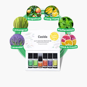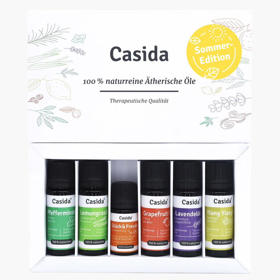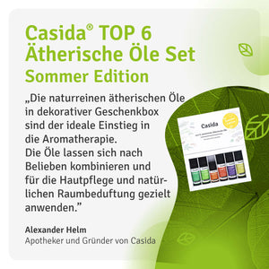 The Top 6 Set Summer Edition by Casida contains the most important essential oils for summer – in a decorative gift box.