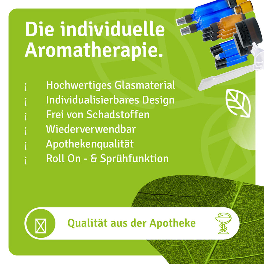 • Die hochwertigen Flaschen schützen die ätherischen Öle oder Ölmischungen vor UV-Einwirkungen und sorgen für eine längere Haltbarkeit der Öle