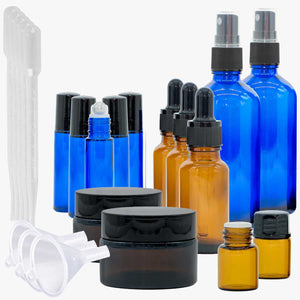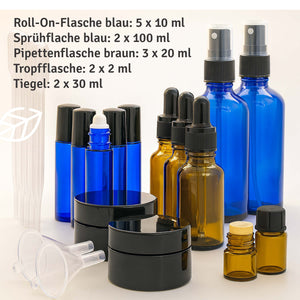 Das Profi Set mit Roll On-, Sprüh-, Pipettenflaschen und Tiegel für ätherische Öle