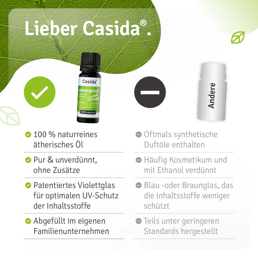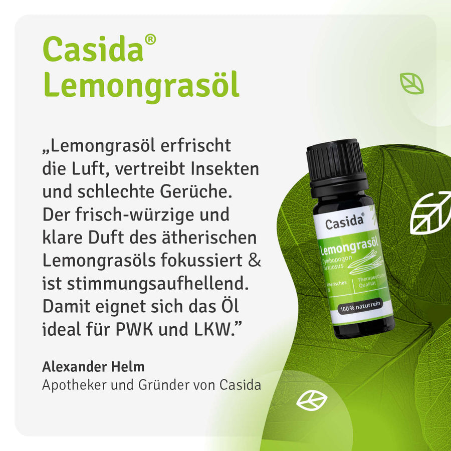 Das Casida Lemongrasöl / Zitronengrasöl ist in jeder Apotheke erhältlich - auch in deiner.