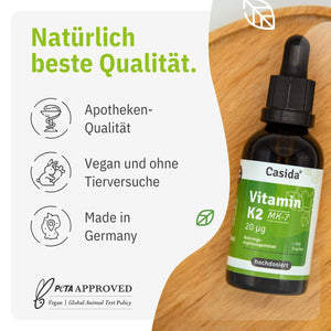 Die Casida Vitamin Kur versorgt den Körper mit den wichtigen Vitaminen B12, D3 und K2, die viele wichtige Funktionen im Körper erfüllen.