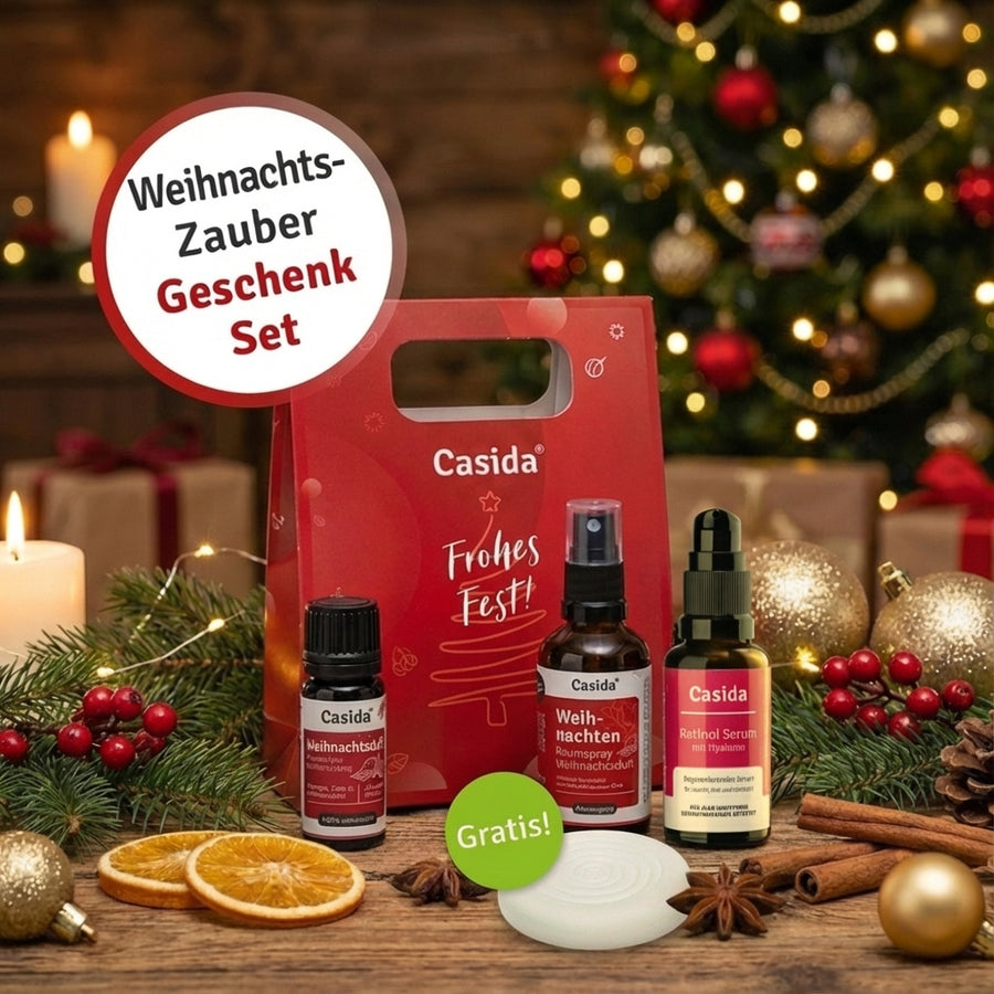 Verschenke pure Weihnachtsstimmung und exklusive Hautpflege in einem Set: Das Casida® Weihnachtszauber Geschenkset vereint festliche Düfte, hochwertige Pflege und ein handgefertigtes Extra – perfekt zum Verwöhnen deiner Liebsten oder für dich selbst. Ein limitiertes Highlight, das Freude, Wärme und Schönheit in die Adventszeit bringt.